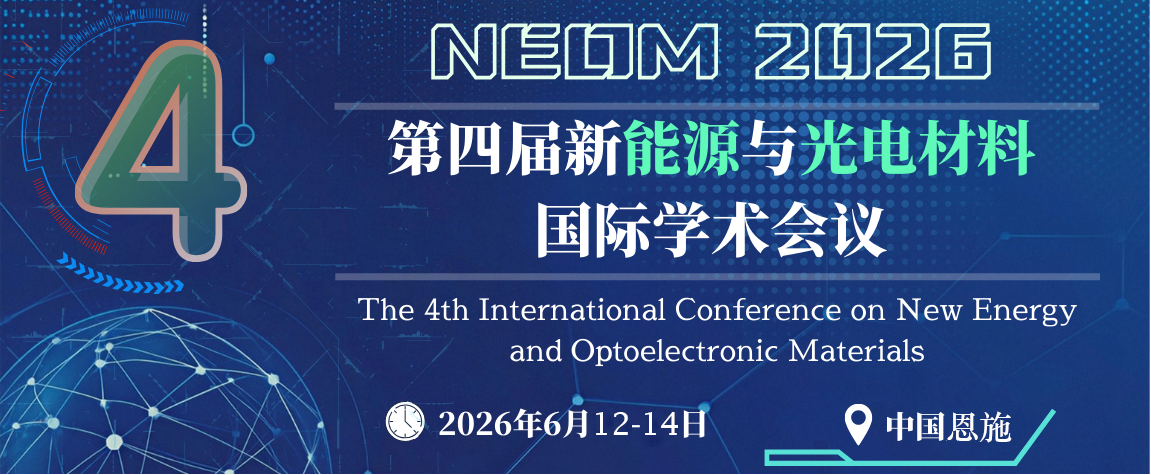 The 4th International Conference on New Energy and Optoelectronic Materials (NEOM 2026), will be held on June 12-14, 2026 in Enshi Tujia and Miao Autonomous Prefecture, China. On behalf of the organizing committee, we would like to cordially invite experts and scholars from academia and industry to attend NEOM 2026!